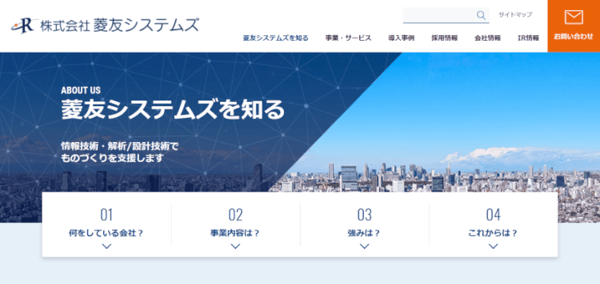 株式会社菱友システムズの下層ページの一つ、自社紹介をしているページは縦長のコンテンツです。