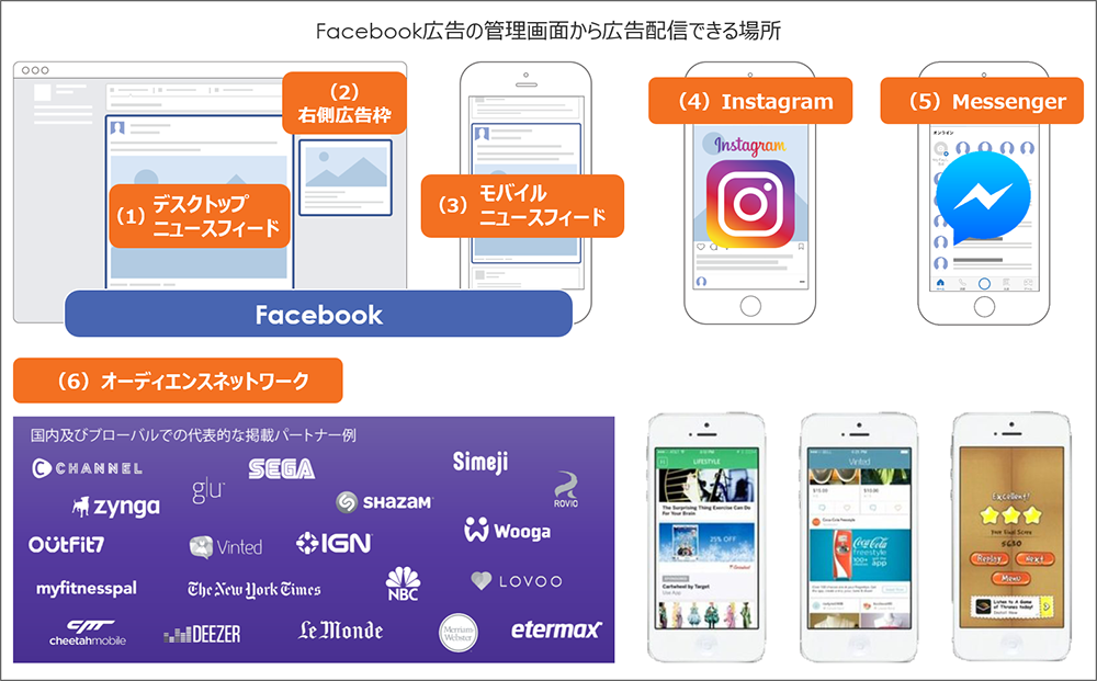 なお、Facebook広告を利用することで、インスタグラム以外にも、メッセンジャーとオーディエンスネットワーク(Facebookが提携しているアドネットワーク)に広告を配信できます。
