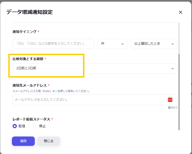 指標がどのくらい増減したときに通知するのかの数値を設定します。