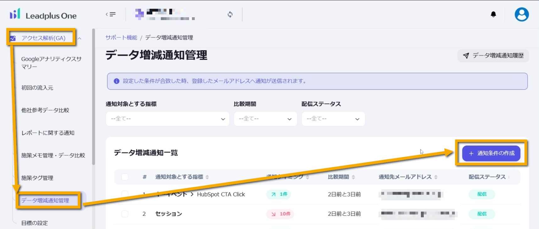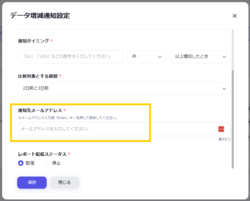通知条件に合致したときに通知メールを送るメールアドレスを入力します。