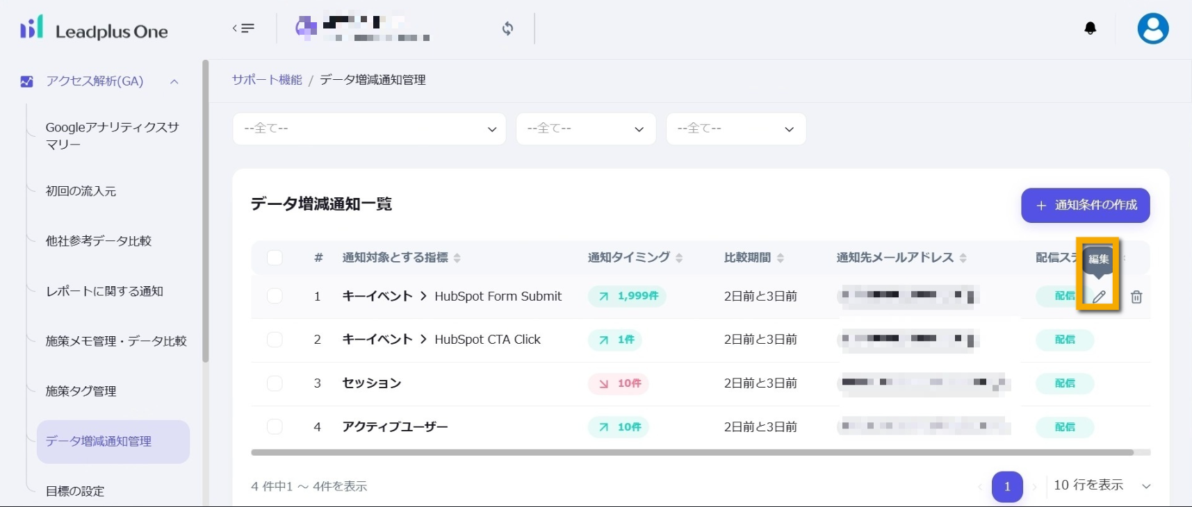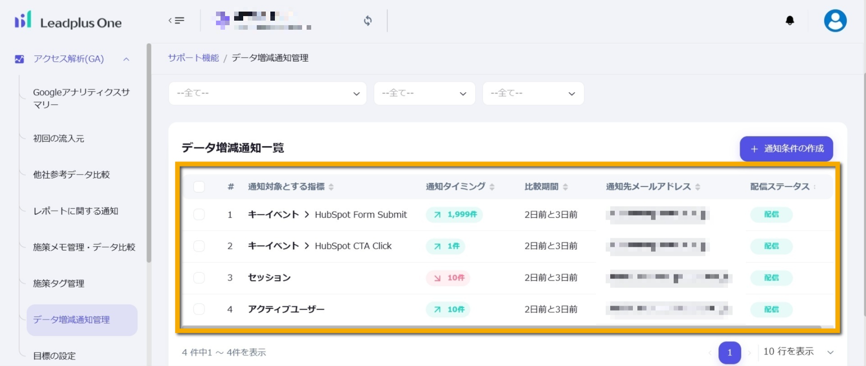 ・「配信」:通知条件に合致したときに通知を送ります。