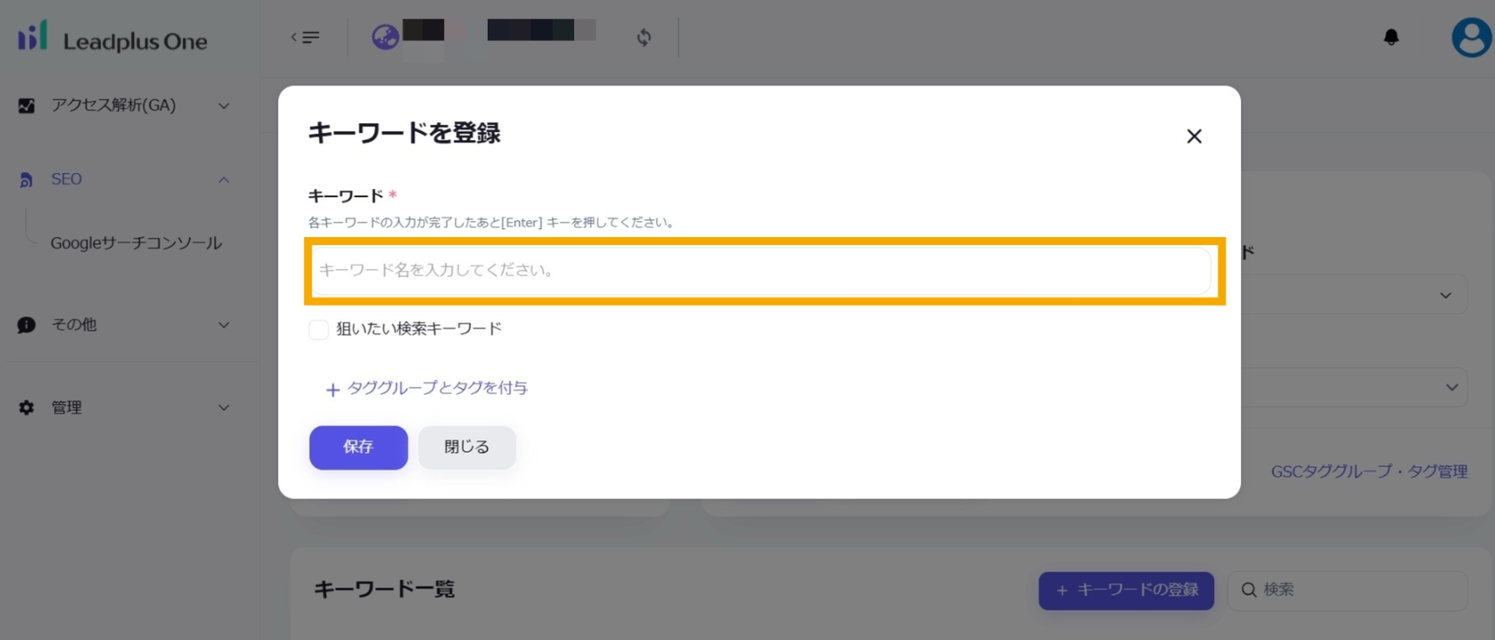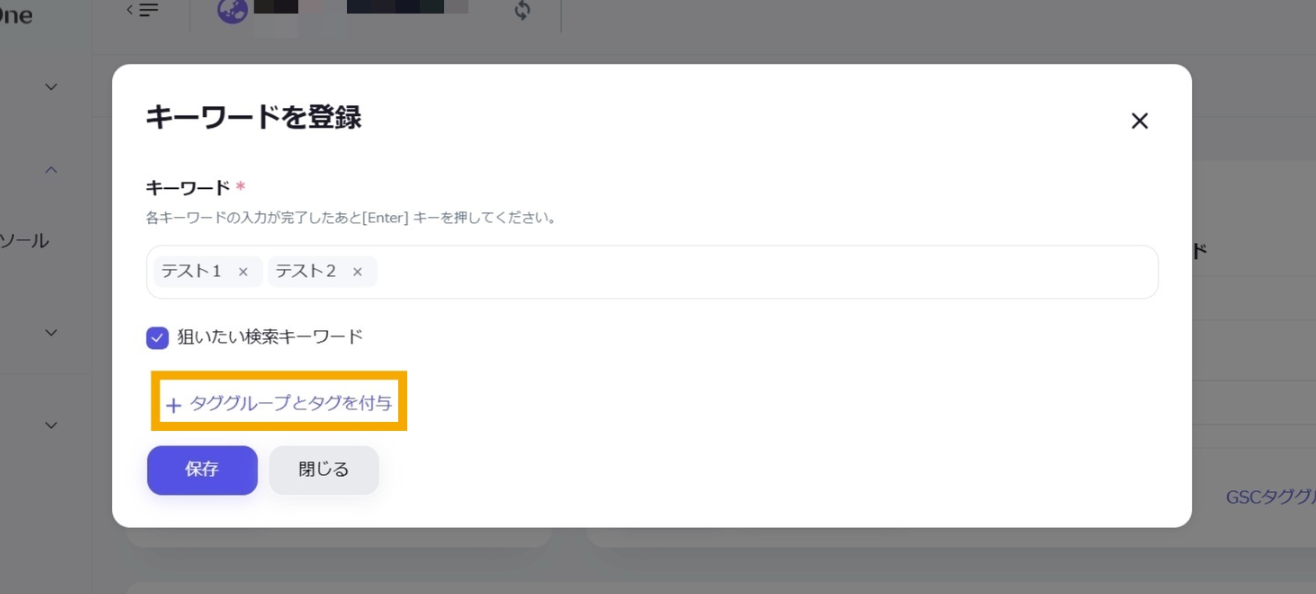タグを登録する場合は、「2.キーワードの入力を行う」を参照して登録します。