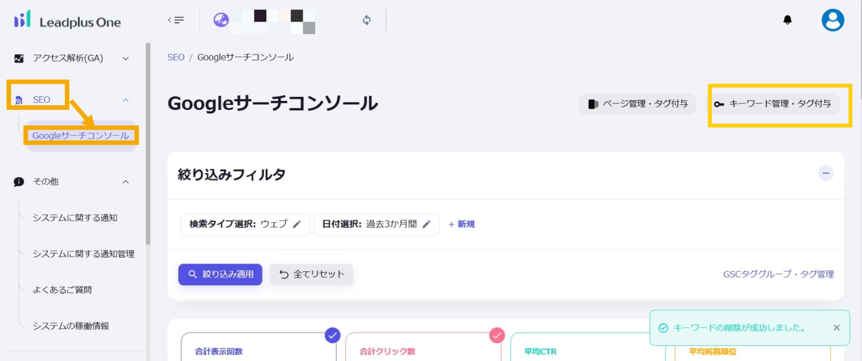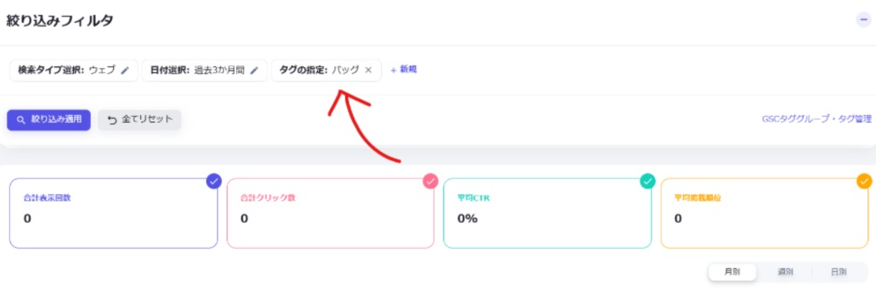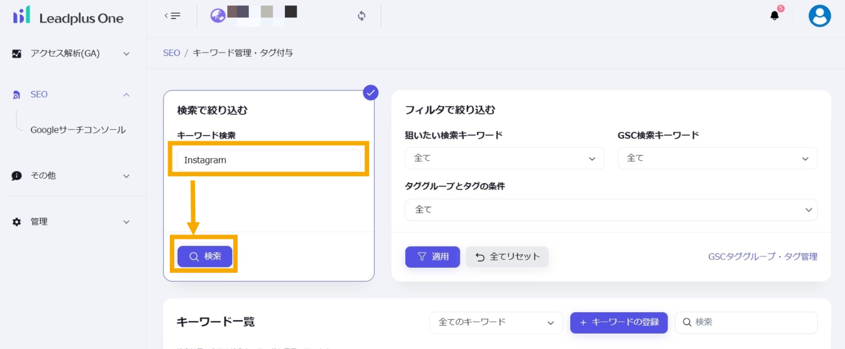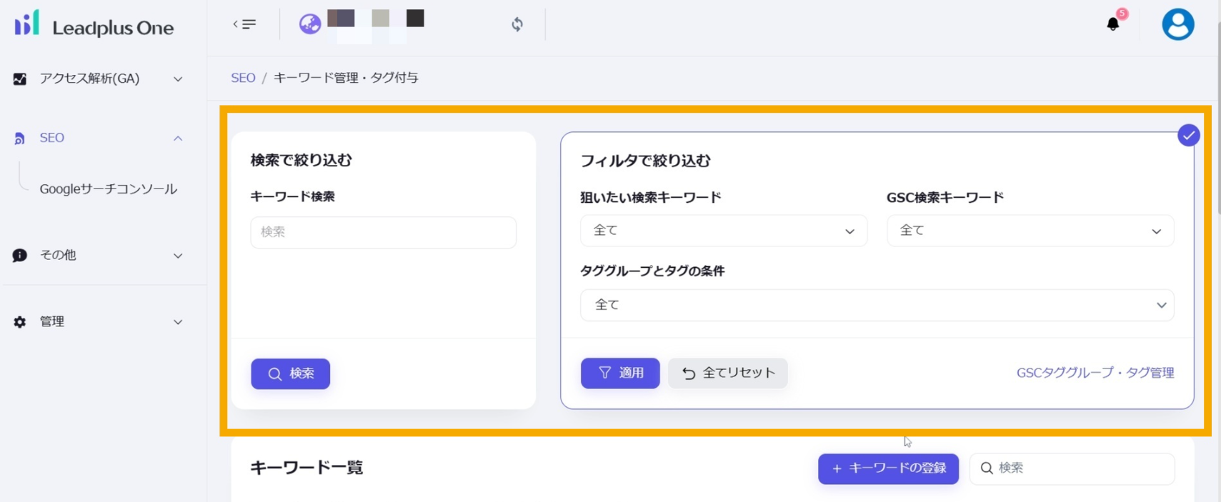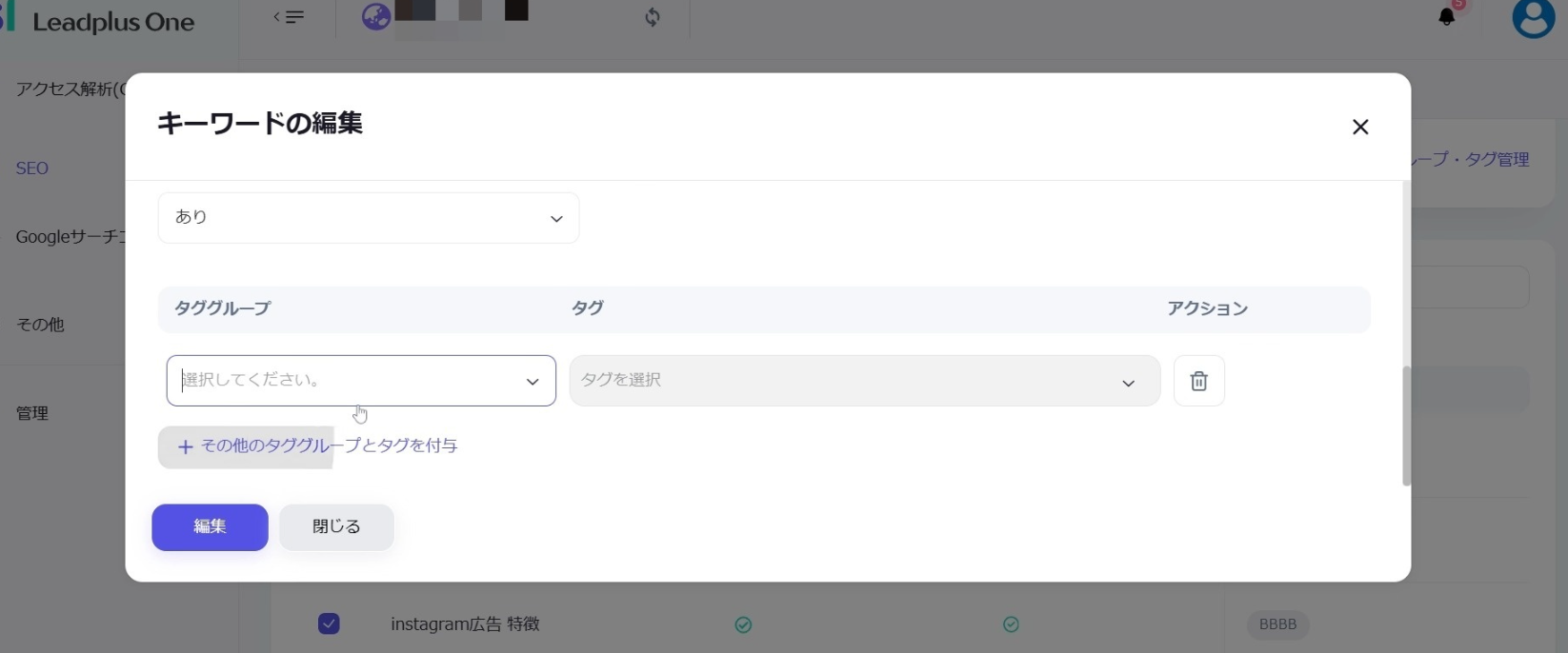 複数キーワードに対して一斉にタグの設定などをすることができます。必要に応じて対象となるキーワードを絞り込むことができます。